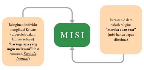 Saya berpendapat bahwa Formula Instituti ini menyatukan dua hal yang dalam perspektif kontemporer kita saling berlawanan: kekuatan keinginan (desire) individu dan ketaatan. Keduanya disatukan oleh perutusan (mission). (1§3)